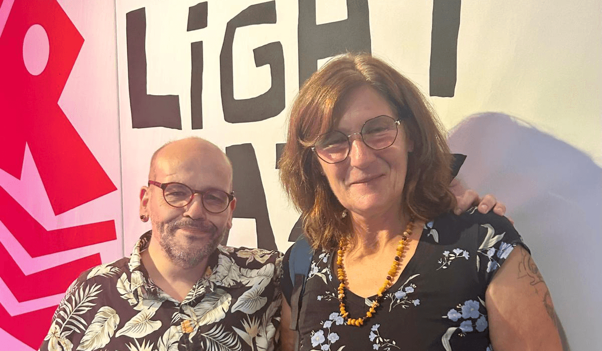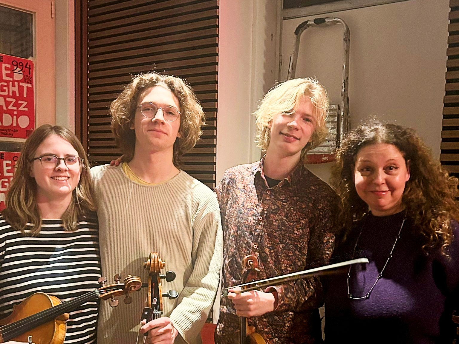 Tiara Roquas van Glasloderij 't Lemmet repareerde tijdens onze uitzending een glas-in-lood raam in ons pand. Ze is met haar Amsterdamse bedrijf gespecialiseerd in glas-in-lood. Tiara was in mei bij ons te gast om erover te vertellen - beluister het interview - en merkte toen een barst in het glas in onze studio op. Daarom is ze nu teruggekomen voor een reparatie.