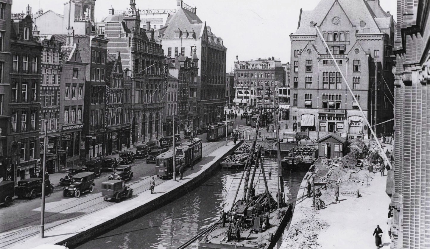 René van Oorlog op de Fiets vertelt over de geschiedenis van het Rokin, dat ooit deel uitmaakte van de middeleeuwse haven en een belangrijke waterweg vormde in de stad. Na decennialange discussies tussen voorstanders van behoud en de groeiende autolobby werd het water in 1937 deels gedempt om ruimte te maken voor verkeer en parkeren.